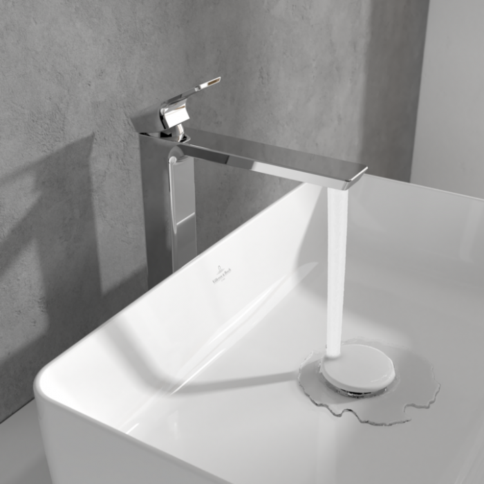 Удобная высота смесителя в сочетании с раковиной, устанавливаемой на столешницу |